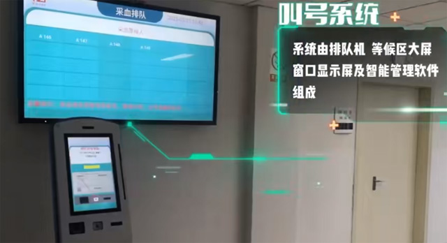 等候區(qū)大屏幕窗口,顯示屏和只能管理軟件組成。病患可以通過身份證、就診卡、手機APP二維碼、社??ǖ鹊确绞健叽a刷卡進(jìn)入排隊序列,空腹等特殊項目也可以設(shè)置個性化彈窗服務(wù)。病患根據(jù)語音內(nèi)容到指定窗口采血。排隊規(guī)則也可以自定義設(shè)置。實現(xiàn)高效人性化排隊機制。