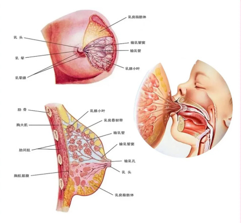 乳腺的正常結(jié)構(gòu),乳房的大體形態(tài)結(jié)構(gòu),形狀是半球狀,乳腺上下范圍在2-6前肋,左右范圍在,內(nèi)側(cè)胸骨旁線-外側(cè)在腋中線,深面:胸大肌和部分前鋸肌,中央部分是乳頭、乳暈。正常的乳腺組織是15-20腺葉組成,就像一串大葡萄,每個(gè)腺葉又分很多小葉。每一腺葉發(fā)出一輸乳管,輸乳管末端開口于乳頭??梢韵胂蟪梢豢脴?,樹枝就像腺葉。那么乳腺從前向后看,乳腺腺葉與輸乳管都以乳頭為中心放射狀態(tài)的排列,那么這個(gè)脂肪組織與結(jié)締組織充填于乳腺腺葉和輸乳管之間。·乳腺結(jié)構(gòu)由淺入深依次為,皮膚、皮下組織、腺體層、腺體后組織。乳腺的結(jié)構(gòu)是皮膚,皮下脂肪,腺體層。