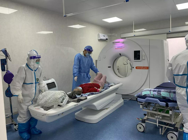 醫(yī)院發(fā)熱門診就診,長方體箱子中進行CT胸部檢查。這個就是方艙CT,在疫情防控期間發(fā)揮了重要作用。嚴格的場地布局,設備組裝,質量控制檢測,放射防護檢測,就可以馬上投入使用。方艙CT獨立在醫(yī)院大樓外面,主要是配套發(fā)熱門診使用。如果有疑似病人就通過專用通道進入方艙CT檢查。雙向單通道沒有與外界聯(lián)系。CT檢查準時高效,確保了檢查的強隔離沒有任何接觸,可以保障檢測人員跟病人沒有感染的風險。采用閉環(huán)管理,檢查人員的口罩、隔離衣服、手套都是全方位的消毒。CT掃描檢查好后的圖像質量。上傳到數(shù)據系統(tǒng)然后查看圖像。各個科室的醫(yī)生也可以通過網絡看片。方便高效快捷。方艙CT的啟用為患者提供精準的影像診斷,為醫(yī)生提供快捷的影像報告、準確的參考依據,疫情防控提供有力的數(shù)據支持。