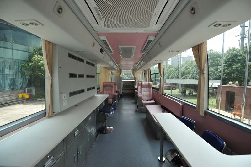 專(zhuān)業(yè)的流動(dòng)獻(xiàn)血車(chē)廠家會(huì)將現(xiàn)代健康體檢理念融匯于整車(chē)研發(fā)過(guò)程,看似小小的獻(xiàn)血車(chē)實(shí)際所用到醫(yī)療設(shè)備一應(yīng)俱全,大部分流動(dòng)的獻(xiàn)血車(chē)和采血車(chē)都有空調(diào)、發(fā)電機(jī)、熱合機(jī)臺(tái)、恒溫保鮮冰柜、休息床、工作臺(tái)、工作椅、工作桌、立式飲水機(jī)、烘手機(jī)、采血冰箱 30米電纜軸、配電柜、采血椅、采血臺(tái)、紫外線(xiàn)消毒燈、 污物桶、滅火器、排風(fēng)系統(tǒng)等。這種移動(dòng)的獻(xiàn)血車(chē)和體檢車(chē)類(lèi)似,是一個(gè)移動(dòng)體檢中心可用于現(xiàn)場(chǎng)體檢和采血。