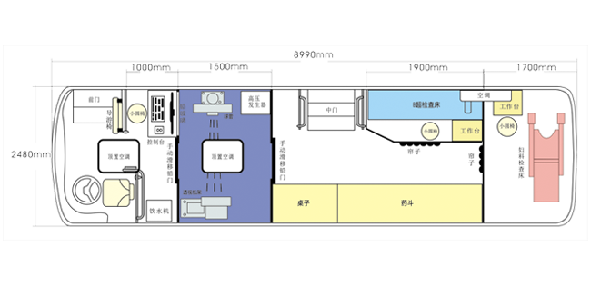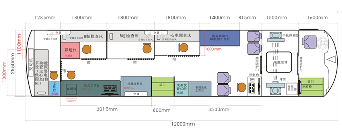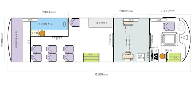 車載DR體檢車功能卻很齊全,車上配裝X光機(jī)、心電超聲檢查、電測聽室、全自動生化分析儀以及檢查床、冰柜、空調(diào)和紫外線消毒燈等先進(jìn)醫(yī)療儀器設(shè)備。